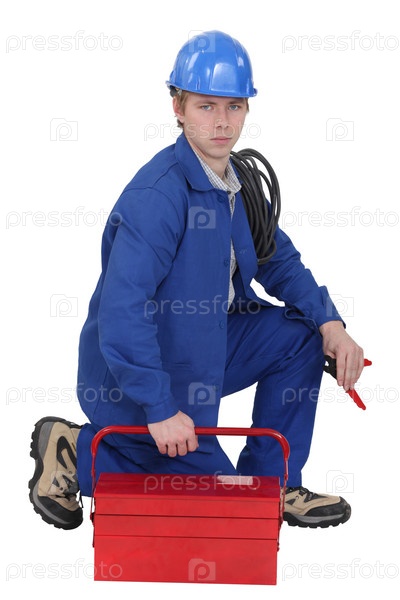 Электрик с коробкой инструментов