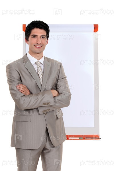 Мужчина с пустым флип-чартом