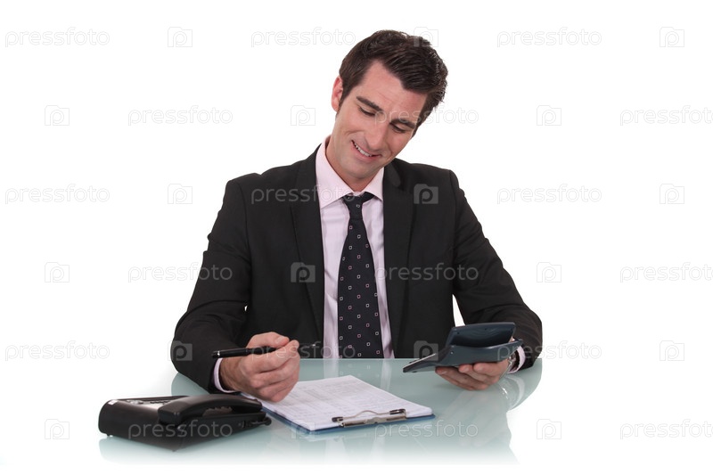 Счастливый бизнесмен с калькулятором