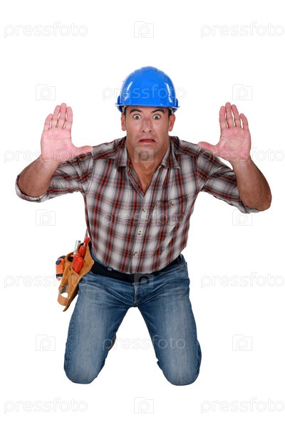 Строительный рабочий останавливает что-то руками