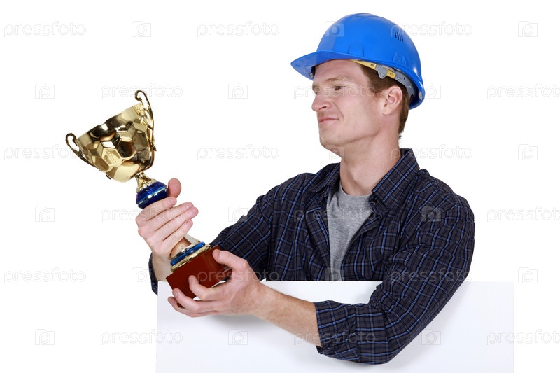 Гордый строитель держит награду