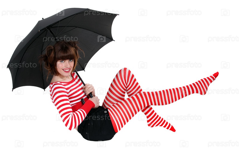 Женщина с зонтом, летящая по воздуху