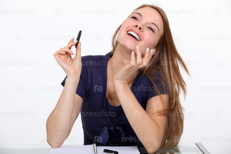 Радостная женщина за письменным столом