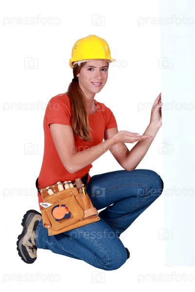 Рабочий с баннером для текста