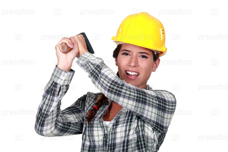 Рабочий стучит молотком