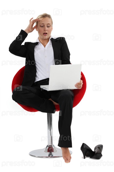 Шокированная женщина с ноутбуком