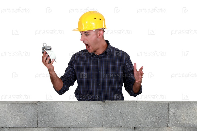 Инженер кричит, глядя на будильник
