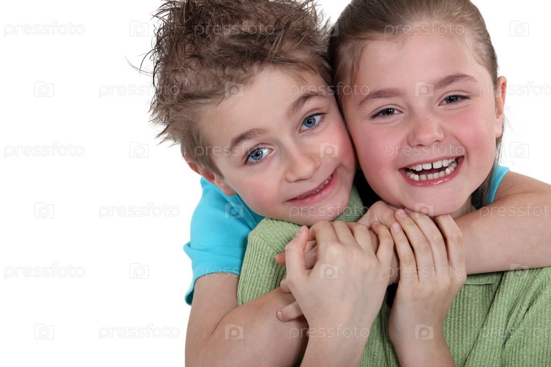 Маленький мальчик и девочка обнимаются