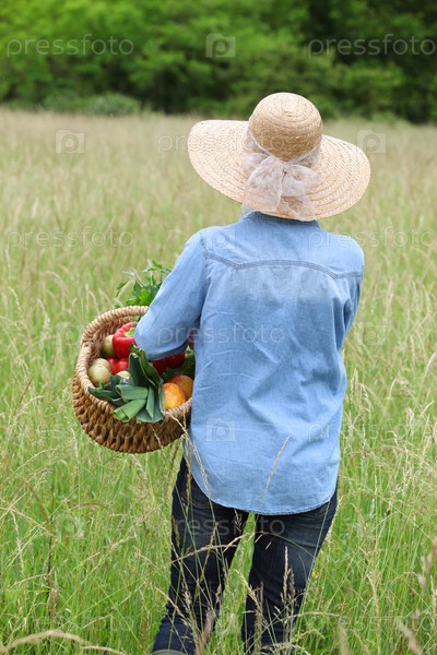 Женщина с овощной корзиной