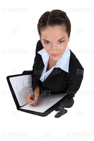Женщина пишет в папке. Вид сверху