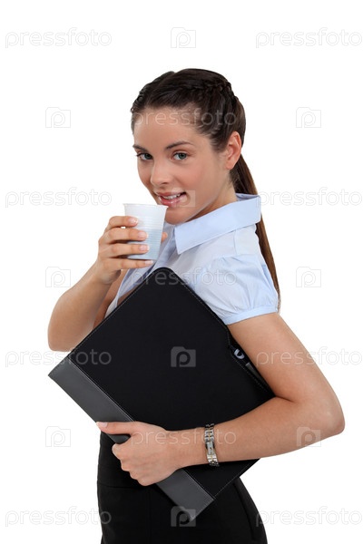 Секретарь пьет кофе