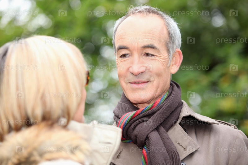 Пожилой господин нежно смотрит на свою женщину