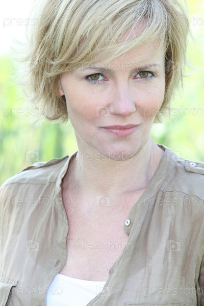 Портрет белокурой женщины на открытом воздухе