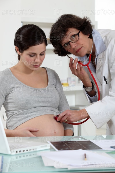 Доктор осматривает беременную женщину