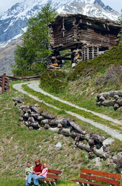 Семья на фоне летних Альп
