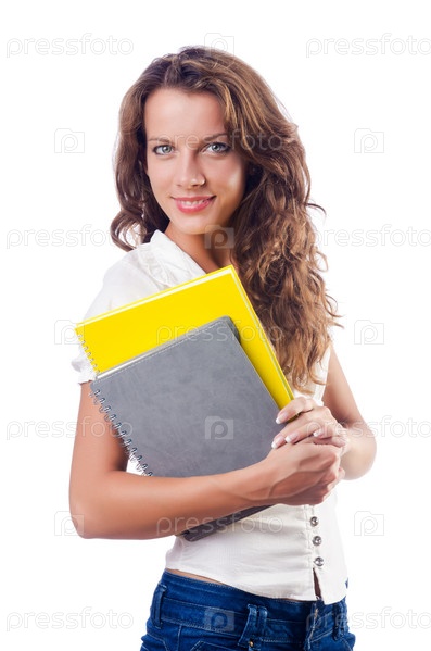 Молодая студентка, изолированная на белом фоне