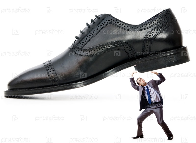 Концепция превосходства с ботинком над мужчиной