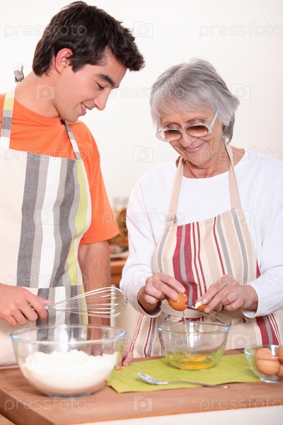 Бабушка и внук на кухне