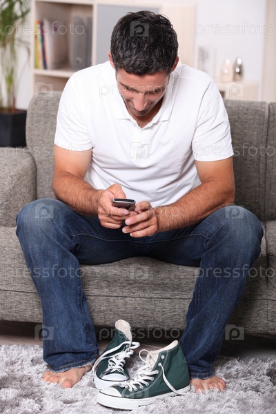 Мужчина отправляет СМС-сообщение