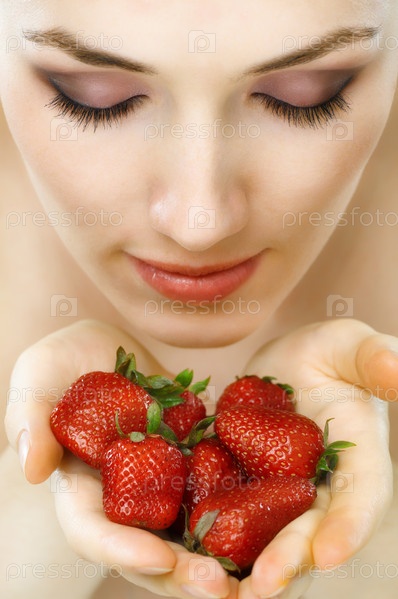 Девушка, наслаждающаяся спелой клубникой