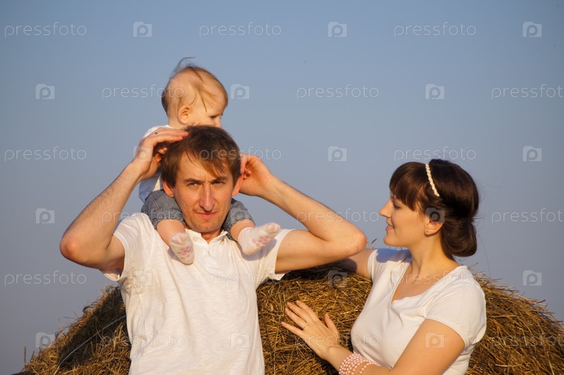 Молодая счастливая семья на прогулке