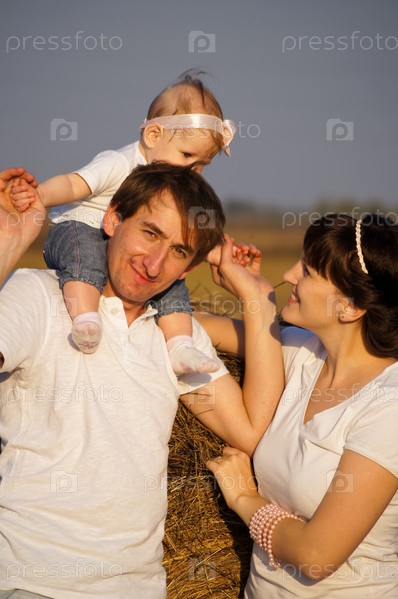 Молодая счастливая семья на прогулке
