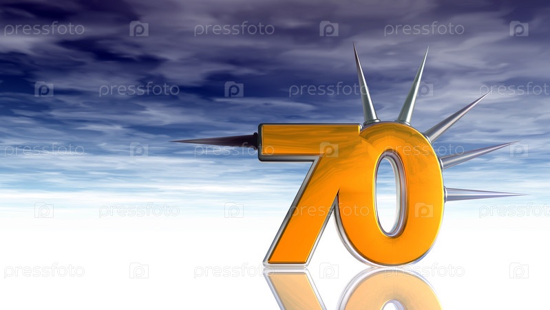 Число 70 с шипами под облачным небом - 3d иллюстрация