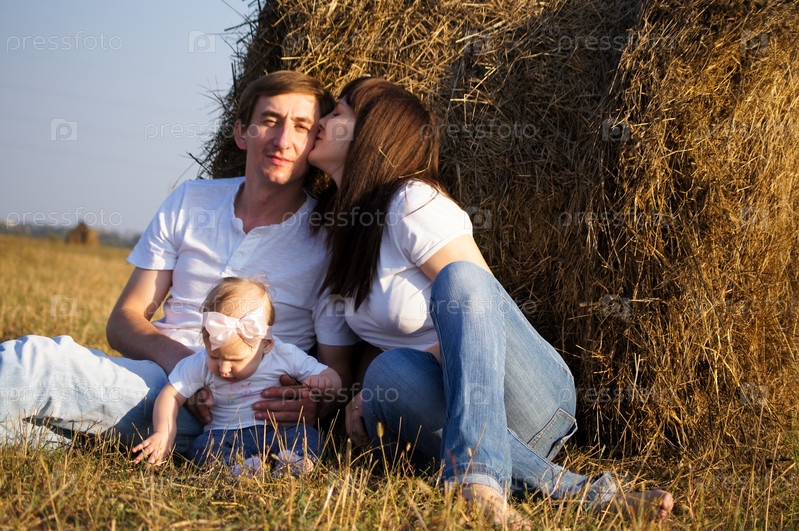 Молодая счастливая семья на прогулке