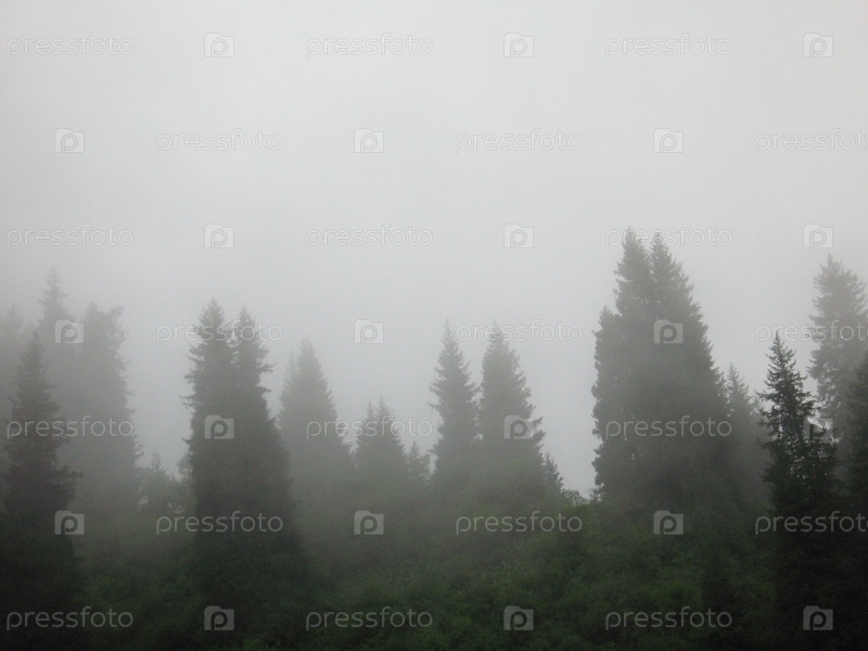 Горные ели в тумане