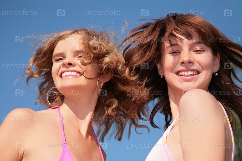 Две подруги с развевающимися волосами