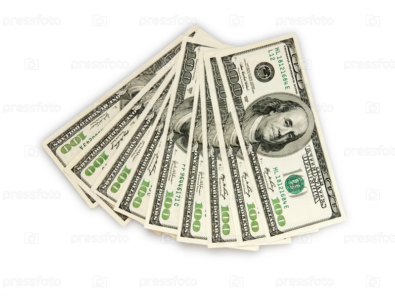 Банкноты долларов, изолированные на белом фоне