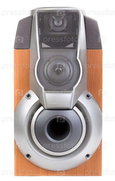 Деревянная акустическая колонка на белом фоне