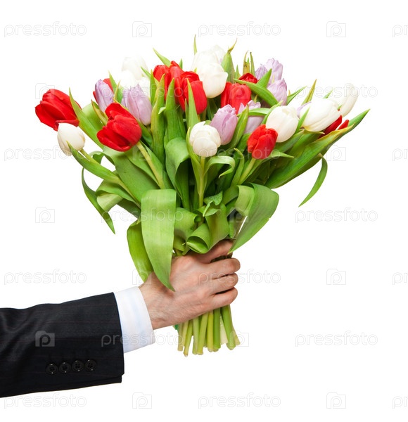 Букет тюльпанов в протянутой руке