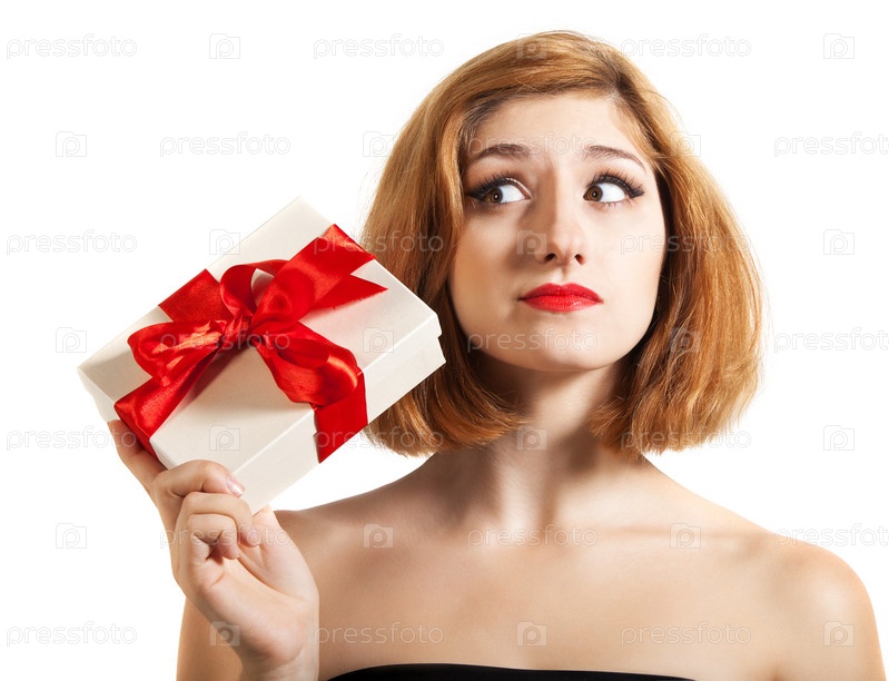 Красивая молодая брюнетка с подарком