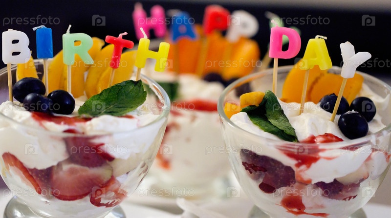 Десерт со свечами «С днем рождения»