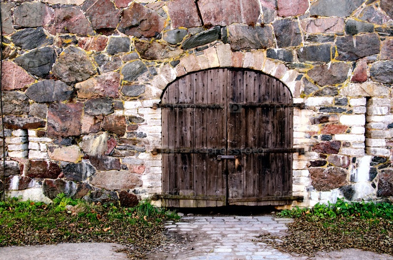 Деревянная дверь в каменной стене