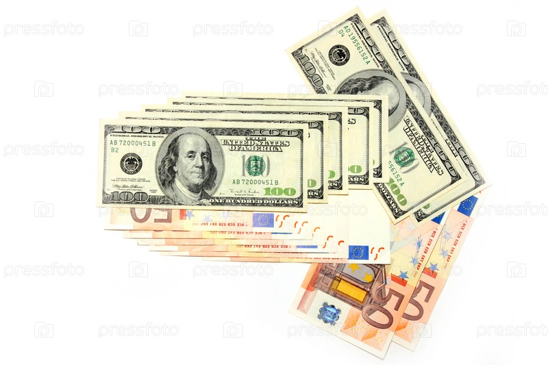 Несколько банкнот американского доллара и евро в качестве финансового фона