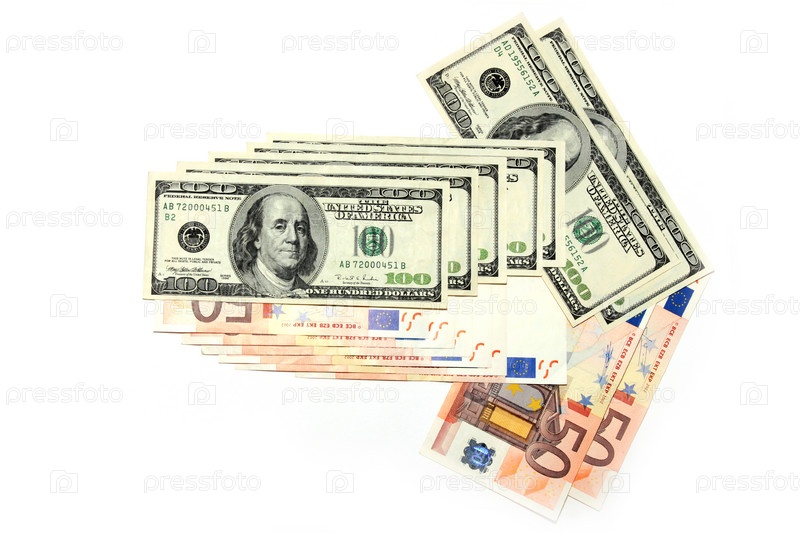Несколько банкнот американского доллара и евро в качестве финансового фона