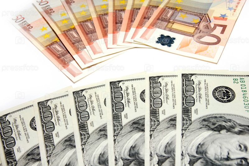 Несколько банкнот американского доллара и евро в качестве финансового фона