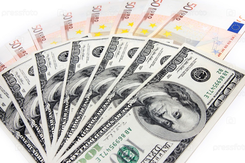 Несколько банкнот американского доллара и евро в качестве финансового фона