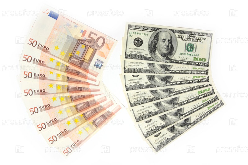 Несколько банкнот американского доллара и евро в качестве финансового фона