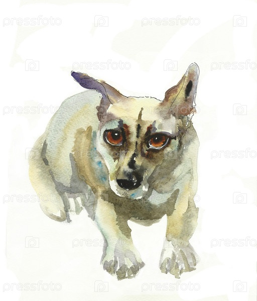 Маленькая беспородная собака, акварель