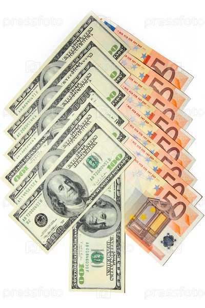 Несколько банкнот американского доллара и евро в качестве финансового фона