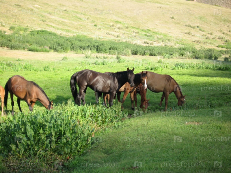 Лошади пасутся в предгорьях Заилийского Алатау