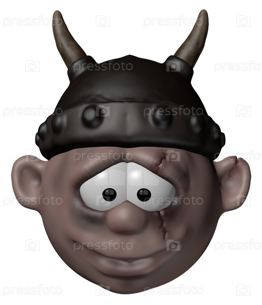 Викинг в шлеме. 3D мультипликационная иллюстрация