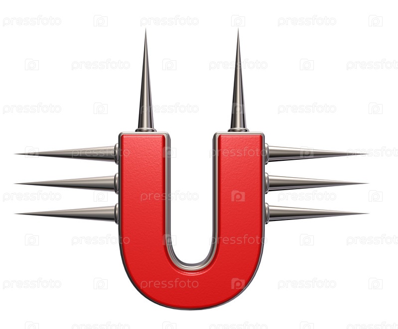 Буква U с шипами на белом фоне - 3d иллюстрация