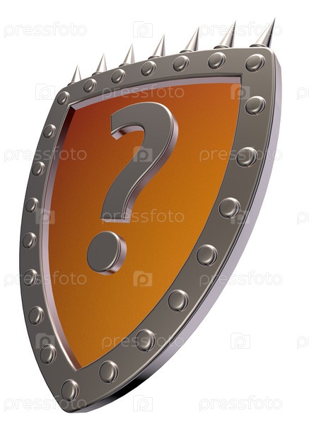Щит с вопросительным знаком на белом фоне. 3D иллюстрация
