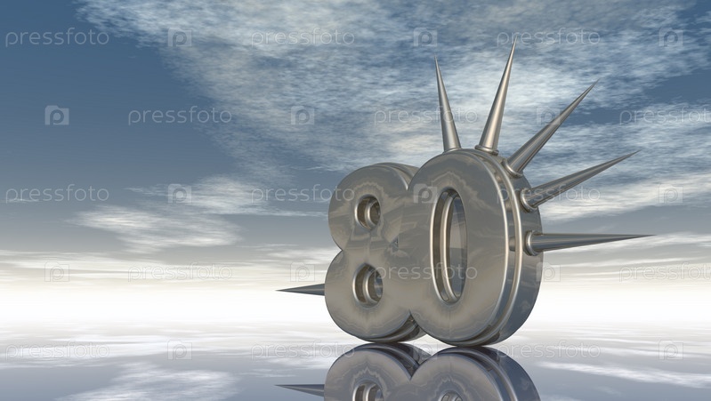 Число восемьдесят с шипами на фоне облачного неба. 3d иллюстрация