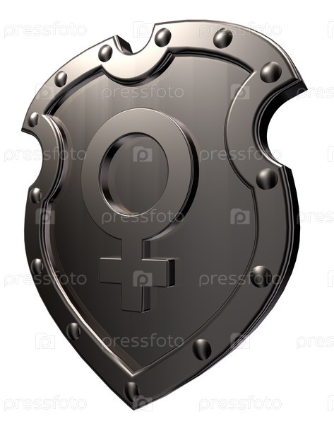 Женский символ на металлическом щите. 3d иллюстрация