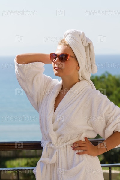Девушка в солнцезащитных очках с полотенцем на голове